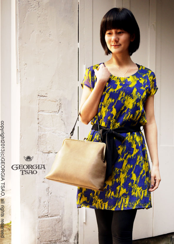 藍藍亮黃綁帶洋裝 NT1980