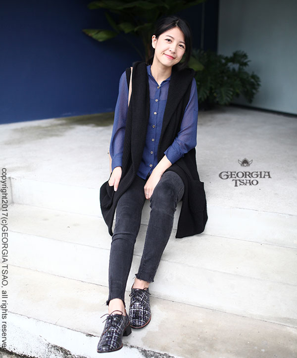 淺灰色的背心毛衣,無論單穿或搭在外套內,都很好搭!