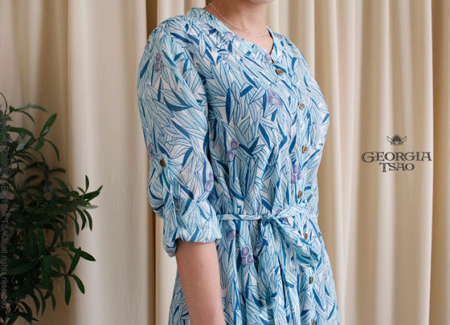 考量到夏末天氣依舊炎熱,因此選用有點透感、穿起來涼快的布料來製作